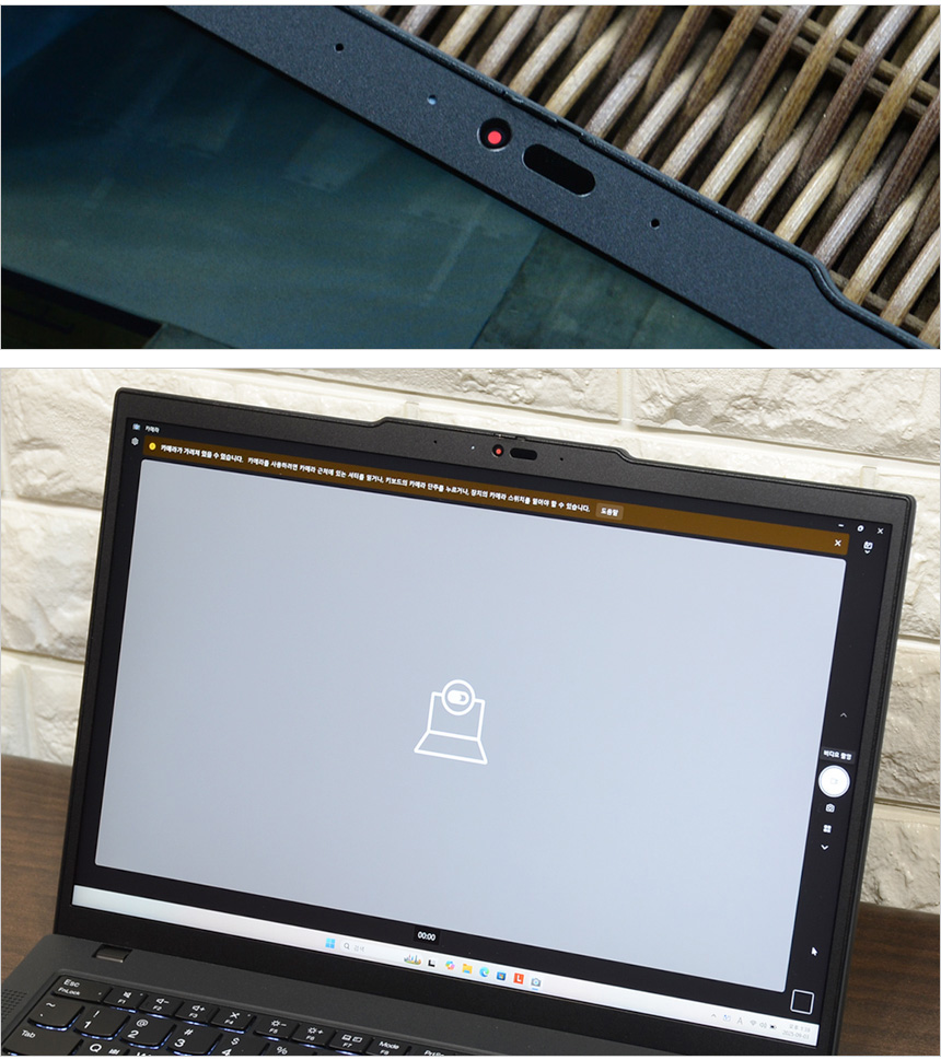 웹캠을 이용한 비주얼 해킹이나 사생활 침해를 원천적으로 차단할 수 있도록 프라이버시 셔터가 장착된 것을 확인할 수 있다. 물리적으로 카메라를 가려주기 때문에 해킹으로 노트북 권한을 획득 하더라도 사용자나 주변 상황을 전혀 볼수 없다.
