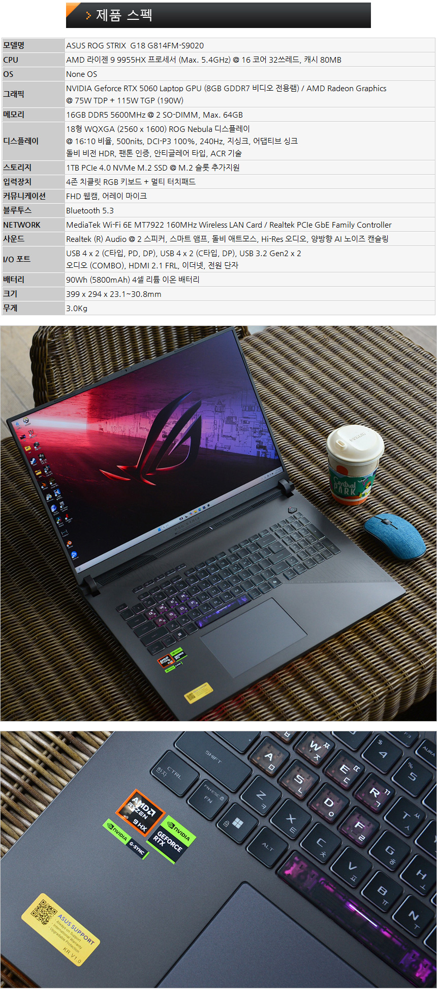 대화면으로 몰입감 높인 240Hz 게이밍 노트북, ASUS ROG STRIX G18 G814FM-S9020