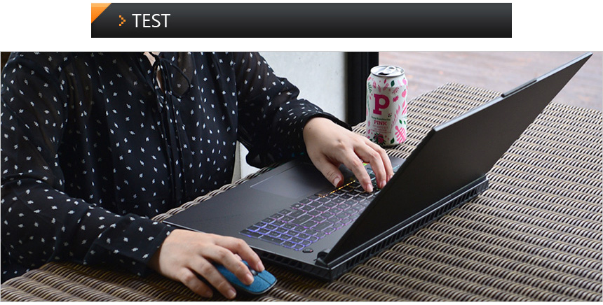 타이핑 테스트를 진행하고 있는 모습으로 낮은 키압대비 깊은 눌림과 확연한 피드백으로 손가락의 큰 부담없이 빠른 타이핑이 가능했다. 특히 대화면 노트북 답게 넓은 팜래스트를 지원해 여유롭게 손을 올려두고 타이핑 할 수 있었다. 타이핑이 많은 직장인이나 대학생 등이 오피스 용도로도 만족스럽게 사용할 수 있을 것이다.