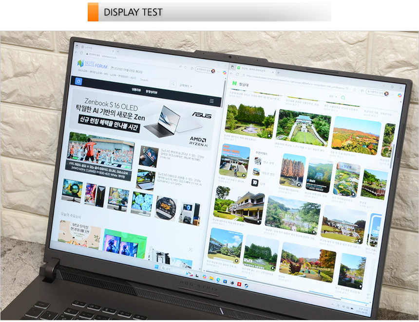 퀄리티 높은 디스플레이 탑재도 빼놓을 수 없는 장점이라 할 수 있다. WQXGA 고해상도에 화면 크기를 18형으로 키우고 3면 슬림베젤을 적용해 압도적인 몰입감을 선사하며 16:10 비율 지원으로 다양한 용도로 편하게 사용할 수 있었다. 뿐만 아니라 500nits의 높은 밝기를 지원해 어떤 게임맵에서도 명확하게 캐릭터와 배경을 구분할 수 있었으며 240Hz 주사율과 3ms 응답속도, 지싱크 싱크 지원으로 쾌적한 환경에서 게임을 즐길 수 있었다.