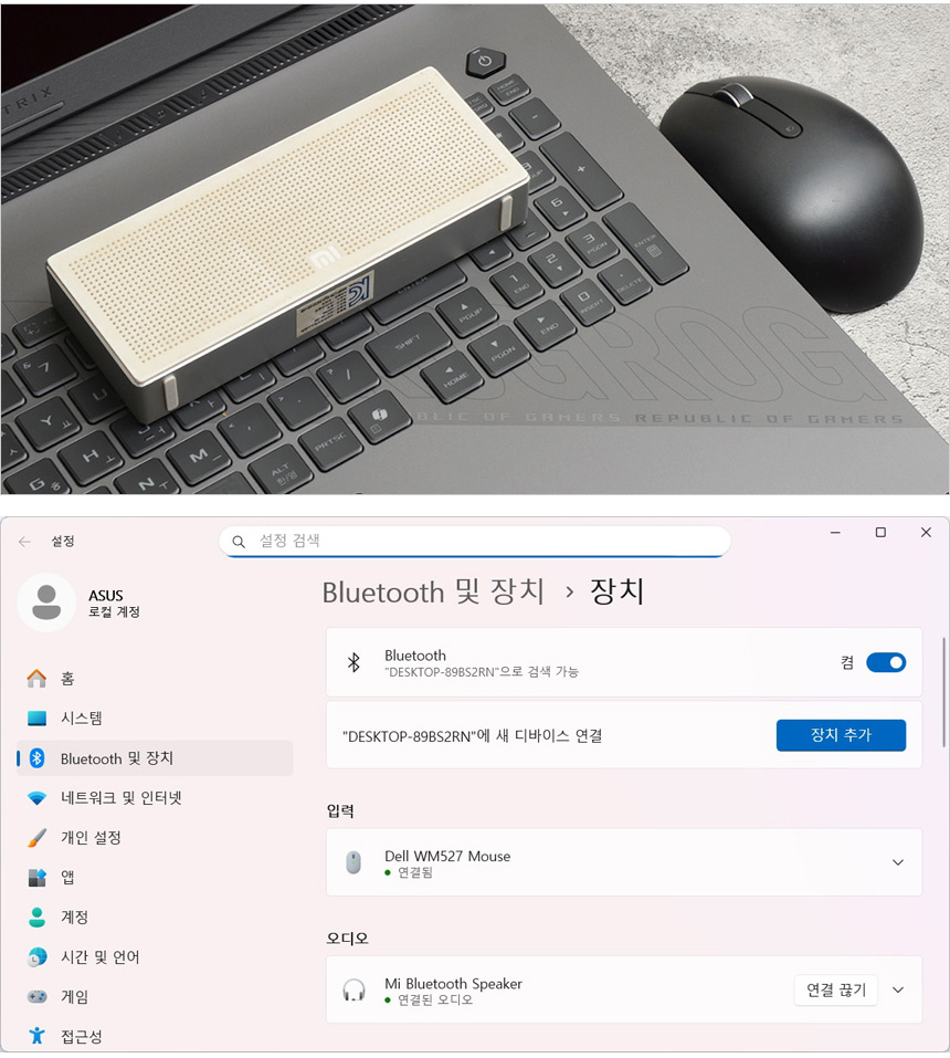블루투스를 지원해 다양한 액세서리를 무선으로 연결해 활용할 수 있다. 스마트폰과 연결해 데이터 전송이 가능하며 사진과 같이 외장 스피커나 마우스 등도 연결해 활용할 수 있다.