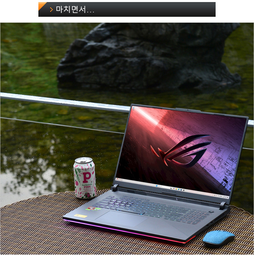 이번에 리뷰를 진행 할 ASUS ROG STRIX G18 G814FM-S9020는 최상위 라인업인 ROG 스트릭스 시리즈의 최신작으로 보급형 모델들과는 부품구성 자체가 다르다. 18형 대화면에 WQXGA 해상도, 240Hz 주사율, G싱크, 500nits 의 높은 밝기를 지원하는 최상급 디스플레이를 탑재해 높은 몰입감을 선사하며 보급형 모델에서는 볼 수 없는 하이엔드급의 CPU를 탑재해 게임은 물론 작업등의 용도로 유용하게 사용할 수 있다.