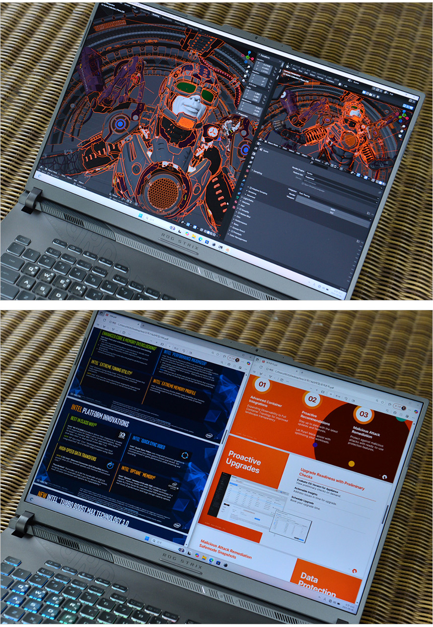 이 제품은 ROG 시리즈의 최신작이지만 게이밍 노트북으로만 정의하고 싶지 않다. 그 이유는 보급형 모델에서는 절대 사용하지 않는 최상급의 CPU가 탑재되었기 때문이다. (80MB 의 대용량 캐시를 탑재한 AMD 라이젠 9 9955HX 는 대부분의 테스트에서 최상의 퍼포먼스를 보여주었다.) 게임용으로 활용해도 무방하지만 개인적으로는 영상편집이나 랜더링 등의 작업용 노트북으로 사용하는 것을 추천한다. 경쟁 모델과는 확연한 속도차이를 경험할 수 있을 것이다.