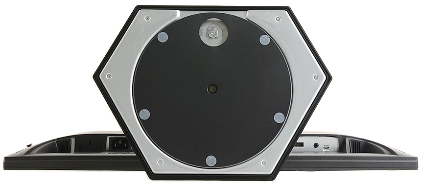 멀티스탠드의 모습으로 하단에 홀이 설치되어 케이블을 깔끔하게 정리할 수 있으며 바닥면에는 스위블을 위한 회전판과 고무패드가 장착되어 있는 것을 확인할 수 있다.