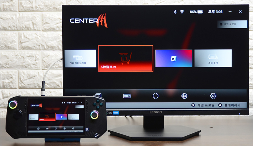 높은 성능을 지원하지만 주사율이 낮아 게임용으로 사용하기 힘든 노트북과 연결해 쾌적하게 게임을 즐길 수 있으며 다중창을 뛰어둘 수 있는 멀티테스킹 작업도 가능하다. 뿐만 아니라 XBOX나 PS5 와 같은 게임콘솔과 연결해 사용할 수 있으며 레노버의 리전고나 리전고S, 기타 게이밍 UMPC와 연결해 대화면으로 게임을 즐길 수 있다. (노트북과 게이밍 UMPC는 C타입 to HDMI 케이블로 연결했다.)