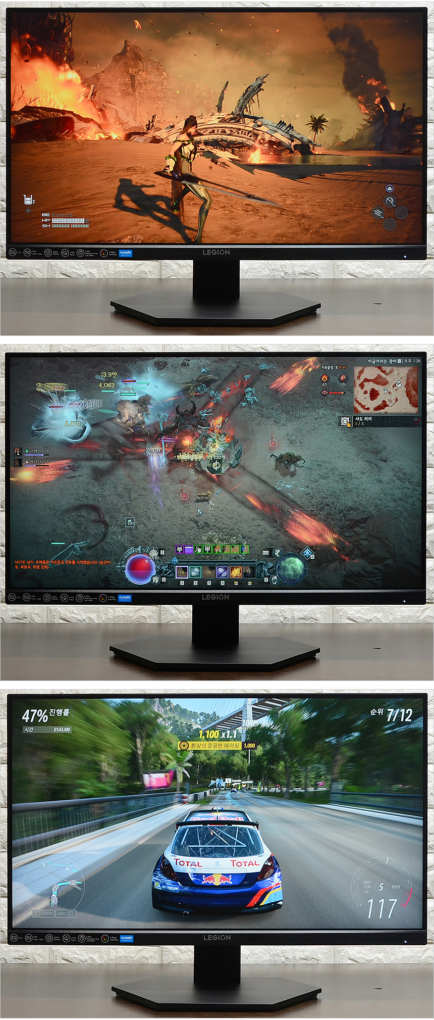 Fast IPS 패널을 사용해 화질 만족감을 높인점도 무척 마음에 든다. 자연스러운 컬러를 구현하지만 선명도가 아쉬운 일부 VA 패널과 달리 게이밍에 특화되어 있으면서도 진하고 선명한 색감을 보여주어 눈이 무척 즐거웠다. 뿐만 아니라 색 재현력도 뛰어나 게임 뿐만 아니라 고화질 동영상 감상이나 사진편집 등의 용도로도 활용할 수 있다.
