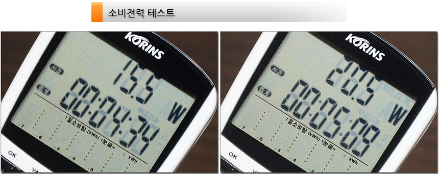 소비전력 테스트를 진행하고 있는 모습으로 저전력으로 동작하는 것을 확인할 수 있었다. (대기 0.5W, 50% 밝기 15.5W, 100% 밝기 20.5W) 전기세 걱정없이 사용할 수 있을 것이다.
