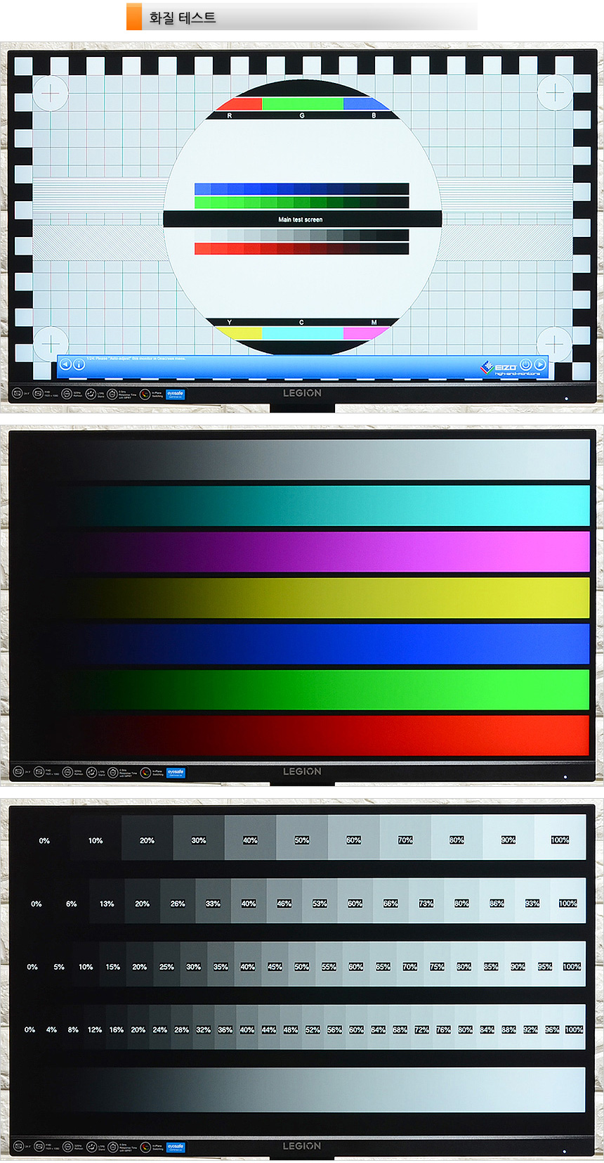 또한 대부분의 IPS 모니터와 같이 1,000:1 의 고정명암비를 지원한다. 상단의 사진은 그레이스케일 차트를 확인하고 있는 모습으로 확연한 구분감을 제공했다. (HDR을 지원해 깊이감 있는 영상을 즐길 수 있다.)