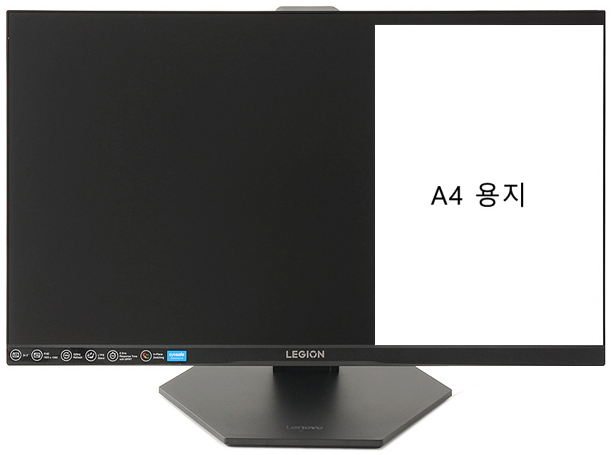 모니터 전면부의 모습으로 24.5형의 크기에 FHD (1920 x 1080) 해상도를 지원하는 Fsat IPS 패널이 설치되어 있다. VA나 TN 패널과 비교되는 진한 색감을 즐길 수 있었으며 시야각으로 인한 스트레스 없이 어떤 각도에서나 선명한 영상을 즐길 수 있었다. 또한 300cd/㎡ 의 높은 밝기를 지원하며 1,670만 컬러에 sRGB 99% 지원으로 게임 뿐만 아니라 일반 용도로도 편하게 사용할 수 있다.