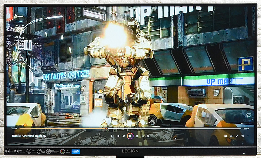 4K 동영상을 이용해 테스트를 진행하고 있는 모습으로 슬림 베젤이 적용되어 높은 몰입감을 경험할 수 있었다. 또한 빠른 응답속도 지원으로 스포츠 영상에서 잔상이 거의 눈에 띄지 않았으며 IPS 특유의 진한 색감도 인상적이었다. 동영상 감상 용도로도 손색없는 제품이다.