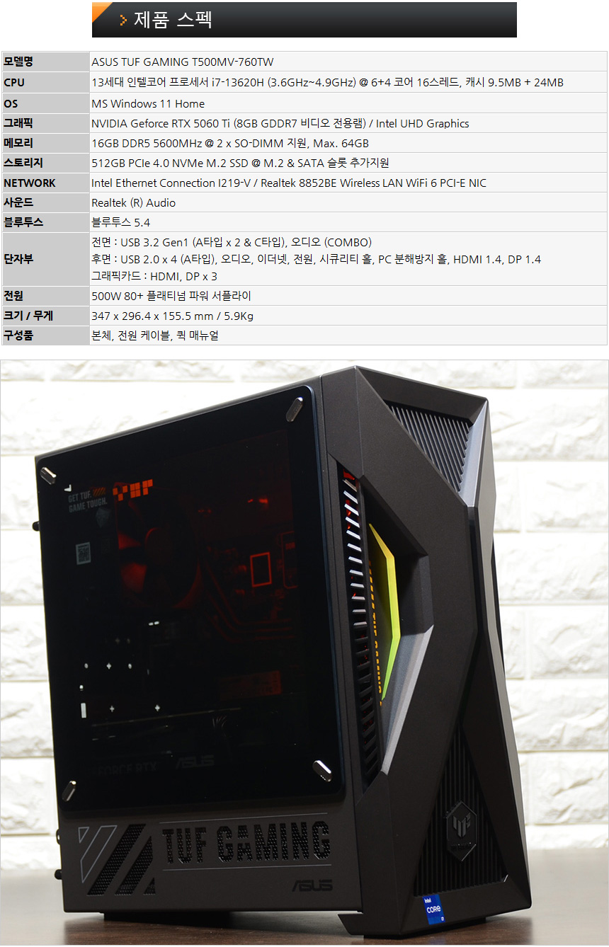 성능은 높이고 크기는 줄인 컴팩트 게이밍 데스크탑, ASUS TUF GAMING T500MV-760TW