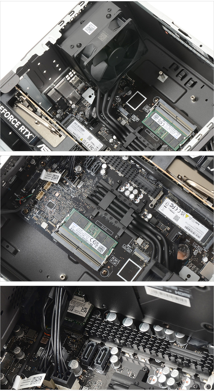 CPU 쿨러가 CPU에 직접 설치된 모델들과 달리 저전력으로 동작해 발열을 최소화 한 모바일 프로세서 탑재 모델답게 CPU에 히트싱크와 구리재질의 히트파이프를 적용해 열을 식히는 동시에 뜨거워진 공기를 바로 배출할 수 있도록 설계된 것이 눈에 띈다. (후면에 팬만 설치된 모델들과 달리 라디에이터가 적용되어 있다.) 또한 메인보드 전원부 에는 히트싱크를 장착해 안정성을 높였다.
