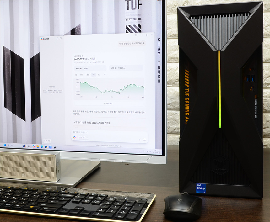 이 제품은 RTX 5060 Ti 그래픽카드가 장착되어 다양한 AI 애플리케이션을 편하게 활용할 수 있다. 상단의 사진은 긱벤치 AI를 이용해 성능을 확인하고 있는 모습으로 사무용 PC나 구형PC 대비 스코어가 상당히 높은 것을 확인할 수 있었다. (구형 그래픽카드를 탑재한 모델들과 분명한 차이를 보여주었다.)