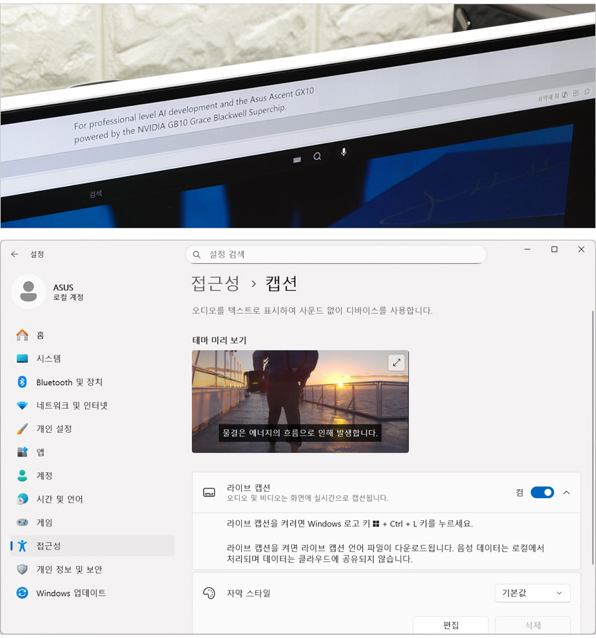 AI 가 음성을 텍스트로 변환해 주는 라이브 캡션 기능을 사용할 수 있다. 한국어를 포함한 다양한 언어의 오디오 자막을 텍스트로 표시해 주어 사무실 등에서 스피커나 이어폰을 사용하기 힘들 경우나 화상회의 에서 적극적으로 사용하기 바란다.