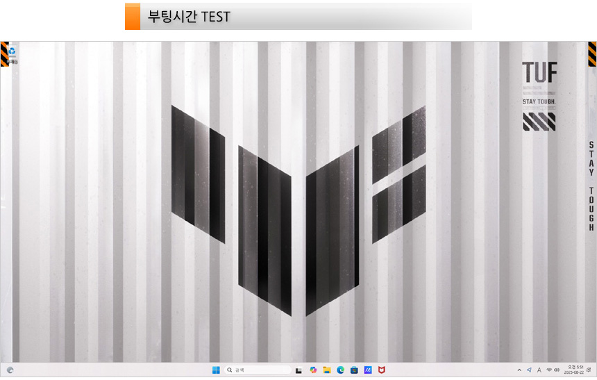 노트북이 완전히 꺼진 상태에서 전원 버튼을 눌러 바탕화면이 노출될 때 까지의 시간 (콜드부팅) 을 측정했는데 18.5초가 소요되는 것을 확인할 수 있었다.