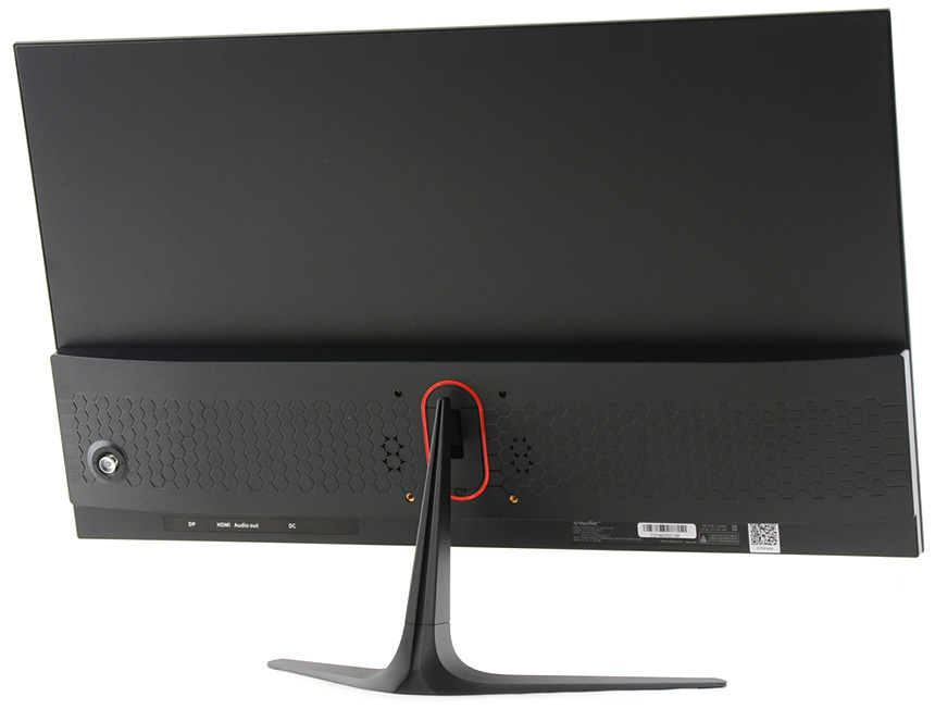 모니터의 디자인은 깔끔하고 세련된 것을 확인할 수 있다. 블랙 컬러를 베이스로 후면에 레드 써클을 적용해 포인트를 주었으며 보급형 제품들과는 확연히 다른 마감 완성도로 고급스러운 느낌을 한껏 살렸다. (집 뿐만 아니라 사무실에도 잘 어울리는 디자인이다.)