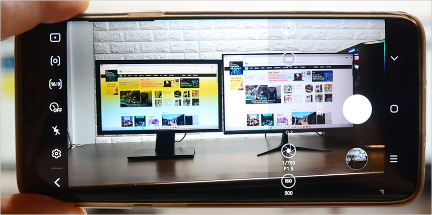 스마트폰 카메라 기능을 이용하면 모니터의 플리커 현상을 확인할 수 있다. (프로 모드에서 셔터스피드 1/300 이상으로 셋팅) 테스트용 모니터는 플리커 현상이 발생하는데 반해 크로스오버 27GFA99 에서는 깜빡임 없이 영상을 재생했다. (동영상을 통해 자세히 확인하기 바란다.)