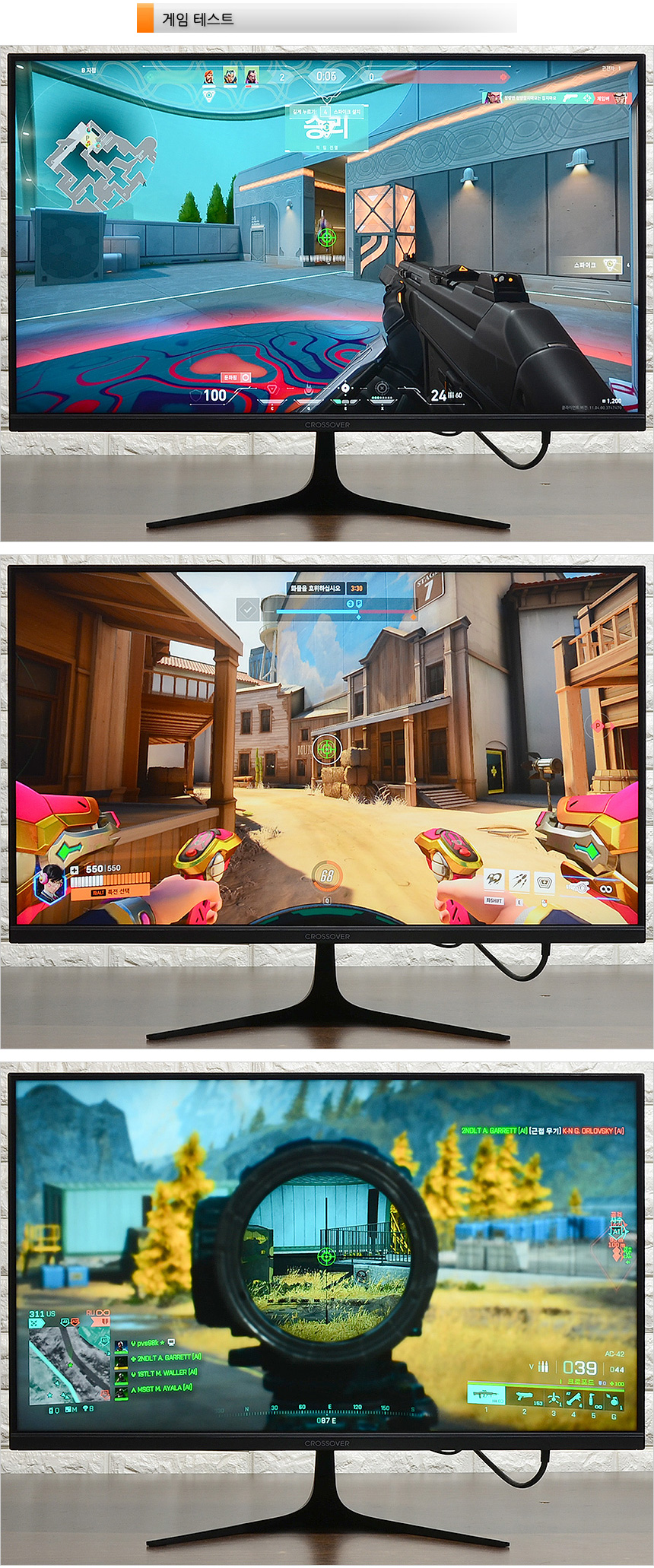 FPS 게임에 특화된 게이밍 모니터로 발로란트와 배틀필드 2042, 오버워치2를 이용해 테스트를 진행해 보았다. 200Hz 주사율을 지원하는 모델답게 물 흐르듯 부드러운 움직임을 보여주었으며 1ms 응답속도를 지원하는 제품답게 잔상도 발생하지 않아 게임에 더 몰입할 수 있었다. 작은 움직임 하나도 정확하게 구분할 수 있는 게이머라면 보급형 게이밍 모니터와 다르다는 것을 분명하게 인지할 수 있을 것이다.