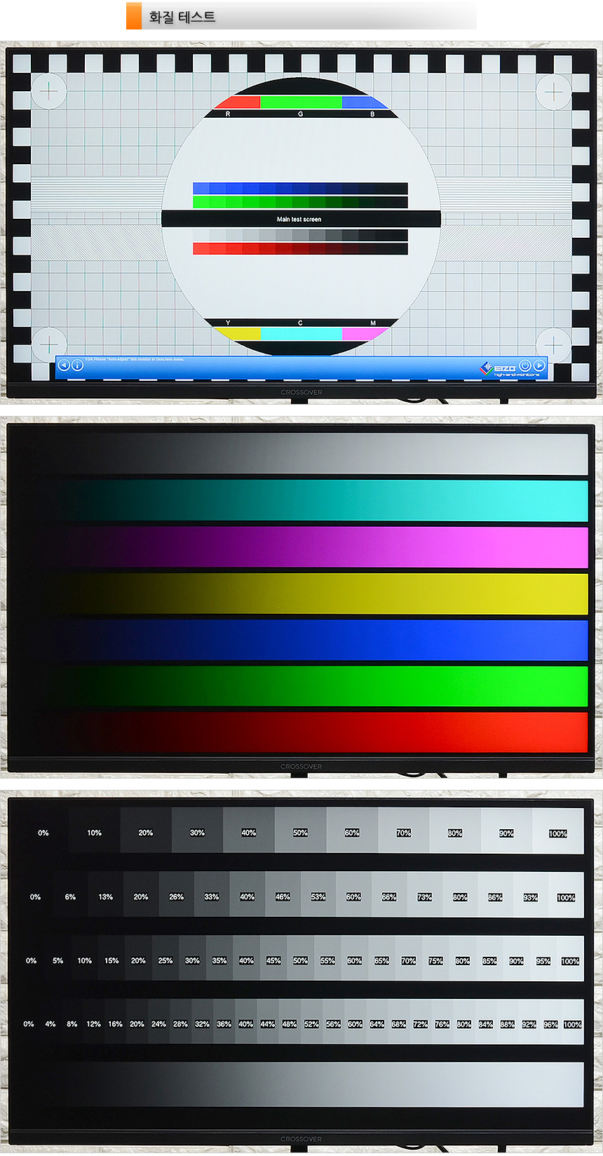 테스트 프로그램을 이용해 화질 테스트를 진행하고 있는 모습으로 FAST IPS 패널이 탑재된 모니터 답게 TN이나 VA 패널을 탑재한 일부 보급형 제품들을 압도하는 진한 색감을 경험할 수 있었으며 디테일도 상당히 뛰어난 것을 확인할 수 있었다. 게임이나 동영상 감상시 선명한 영상을 즐길 수 있을 것이다. 또한 1,000 : 1 의 고정 명암비를 지원해 그레이스케일 차트를 확연히 구분할 수 있다. 참고로 이 제품은 명암대비를 높이는 HDR 지원으로 현장에 있는 듯한 입체감 넘치는 영상을 즐길 수 있다.