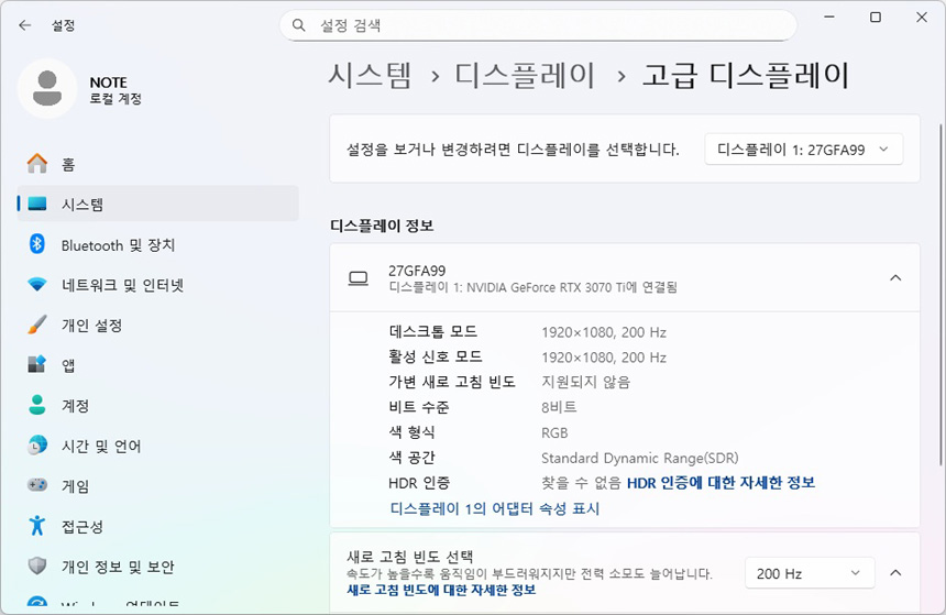 게임에서 200Hz 주사율을 활용하기 위해서는 프레임 확보가 필수적이며 프레임 확보를 위해서는 고성능 그래픽카드를 사용해야 한다. 만약 메인스트림급 그래픽카드를 사용한다면 옵션을 낮추고 업스케일링 기술을 활용해 최대한 프레임을 확보하기 바란다.