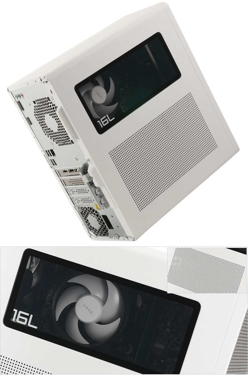 PC의 디자인은 작은 크기에 걸맞게 상당히 세련된 것을 확인할 수 있다. 화사한 화이트와 진한 블랙컬러의 조화가 인상적이며 높은 마감완성도로 고급스러운 느낌을 살린점에도 좋은 점수를 주고 싶다. 또한 측면에 Glass를 추가하고 RGB 팬을 적용해 게이밍 PC 다운 화려함도 옅볼 수 있었다. (작고 세련된 게이밍 PC를 구입하고 싶다면 더할나위 없는 선택이 될 것이다.)