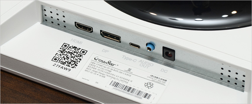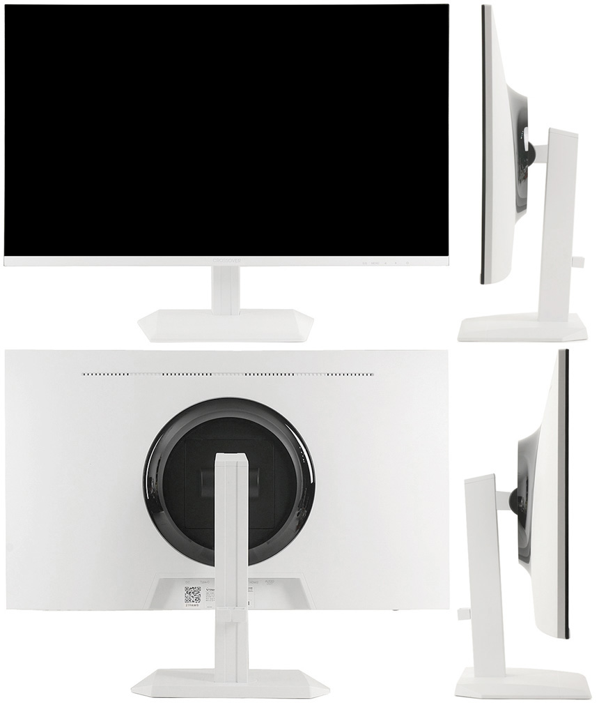 툴리스 방식의 받침대를 지원해 손쉽게 탈착할 수 있으며 내부에는 100mm 베사홀이 설치되어 벽에 걸거나 ARM 등에 장착해 사용할 수 있다. 하단 중앙에는 DP 1.4 단자와 HDMI 2.0 단자를 각각 지원해 PC는 물론 게임콘솔이나 IPTV, OTT 플레이어 등을 손쉽게 연결할 수 있다.