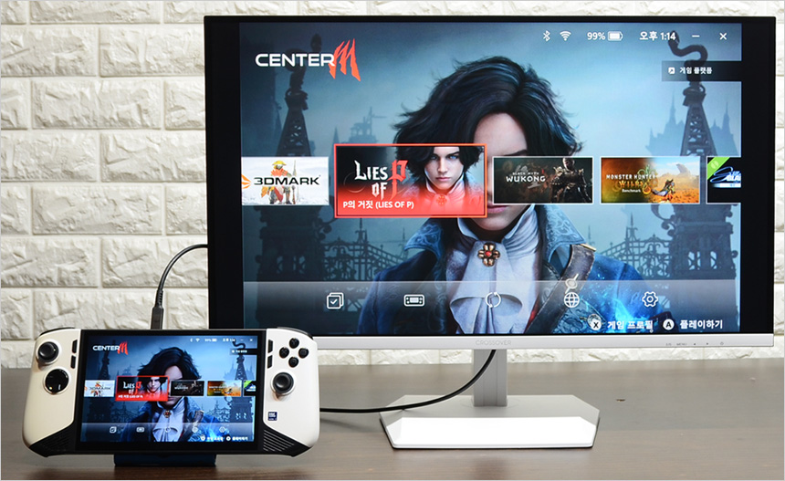 C타입 단자를 지원해 C타입 디스플레이 출력을 지원하는 노트북과 편하게 연결해 대화면으로 게임을 플레이 할 수 있으며 작업용 메인 모니터로 활용할 수 있다. 또한 게이밍 UMPC 등과 연결해 대화면으로 게임이나 영상을 즐길 수 있다.