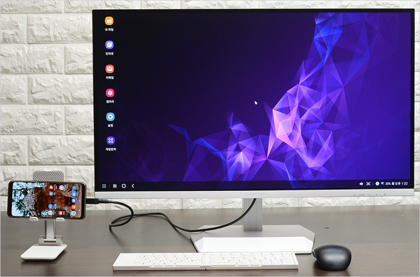 스마트폰 영상을 대화면으로 즐기는 용도로도 활용할 수 있다. 특히 삼성 DEX를 지원하는 스마트폰을 사용하고 있을 경우 스마트폰 연결만으로 PC처럼 활용할 수 있다. (키보드와 마우스는 스마트폰에 블루투스로 연결하면 된다.) 15W PD충전을 지원하는 모뎁답게 연결즉시 스마트폰이 충전되는 것도 확인할 수 있었다.