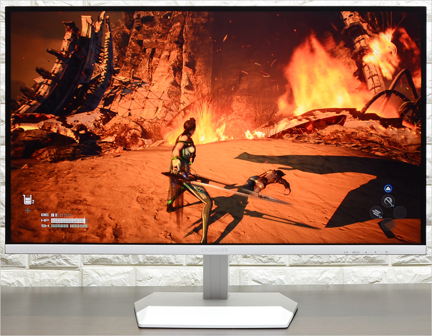 리뷰를 진행한 크로스오버 27FAW9 Fast-IPS 180 화이트 USB-C Ai게이밍 또한 Fast IPS 패널 탑재로 기대 이상의 선명한 화질을 보여주었다. 기존의 20만원 미만 게이밍 모니터의 경우 성능은 상당히 뛰어났지만 VA나 TN 패널을 사용해 진한 색감을 즐길 수 없었던데 반해 이 제품은 작업용 모니터와 비교해도 손색없는 뛰어난 화질을 보여주어 즐겁게 게임을 즐길 수 있었다.