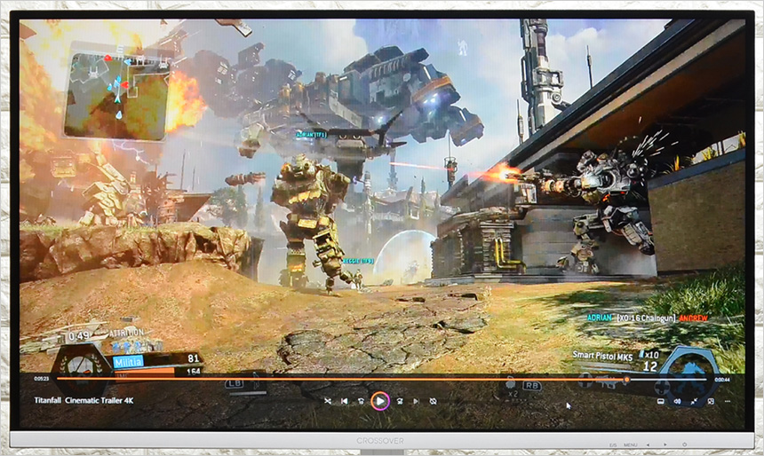 유튜브와 일반 4K 동영상 파일을 재생하고 있는 모습으로 패스트 IPS 특유의 진한 컬러 표현이 인상적이었으며 스피커가 장착되어 시원시원한 사운드를 즐길 수 있었다. 고화질 동영상 감상용 으로도 유용하게 사용할 수 있는 모델이다.