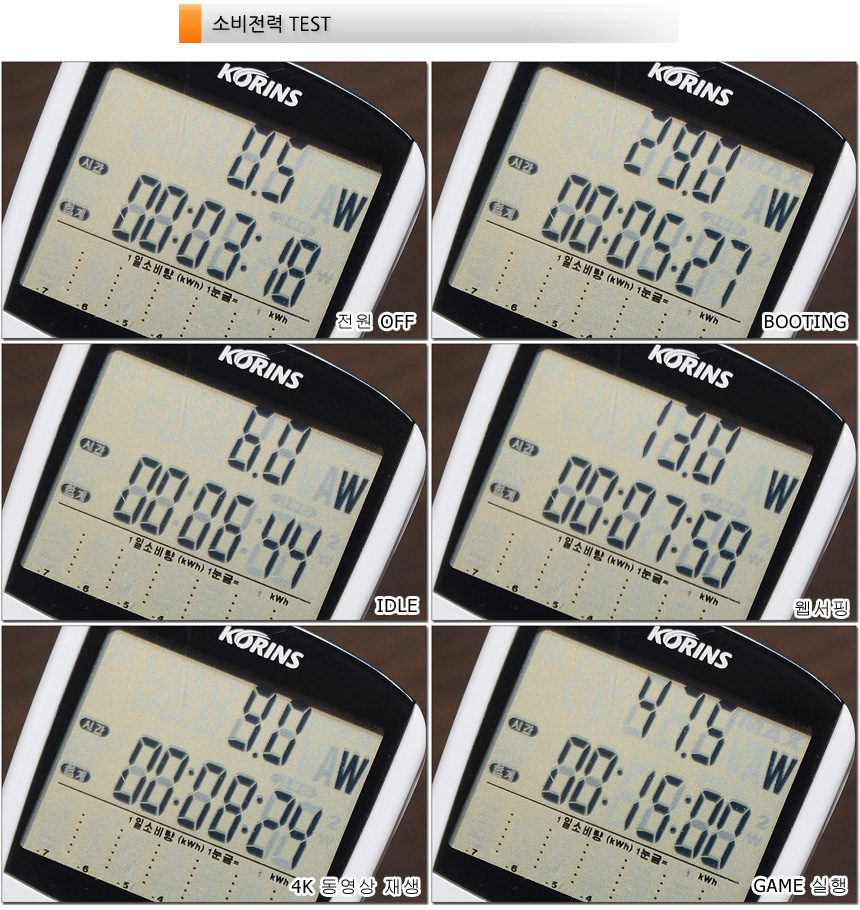 소비전력 테스트를 진행한 모습으로 (최고성능 모드) 루나레이크가 탑재된 모델답게 캐주얼한 작업에서는 20W 내외의 낮은 소비전력으로 작동했으며 게임을 실행하면 소비전력이 50W 까지 올라가는 것을 확인할 수 있었다. (최대 50W 까지 올라갔으며 대부분 40W 초중반대에서 게임이 실행되었다. 또한 소비전력이 낮아지는 스로틀링 현상은 전혀 발생하지 않았다.)