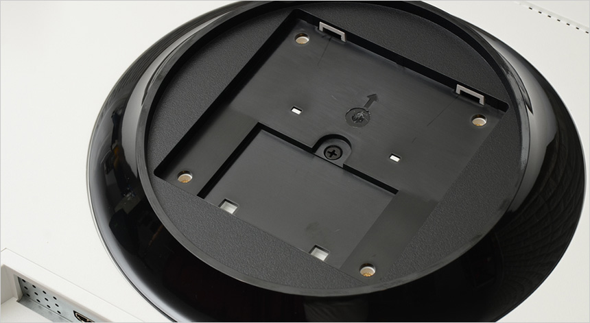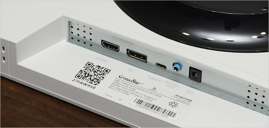툴리스 방식의 받침대를 지원해 손쉽게 탈착할 수 있으며 내부에는 100mm 베사홀이 설치되어 벽에 걸거나 ARM 등에 장착해 사용할 수 있다. 하단 중앙에는 DP 1.4 단자와 HDMI 2.0 단자를 각각 지원해 PC는 물론 게임콘솔이나 IPTV, OTT 플레이어 등을 손쉽게 연결할 수 있다.