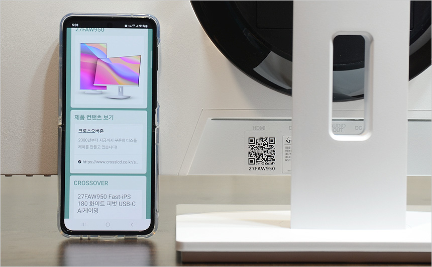 모니터 후면에 부착된 QR코드를 스마트폰 으로 스캔하면 모니터 제조일과 모니터 관련정보를 확인할 수 있다.