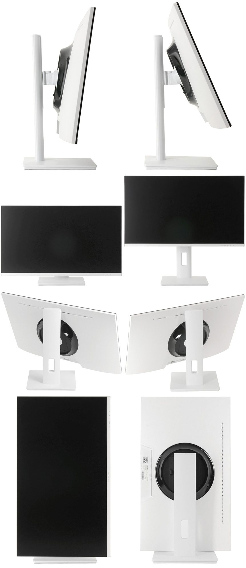멀티스탠드가 장착된 제품으로 모니터 각도 조절은 물론 스위블과 높낮이 조절이 가능해 사용자에 맞게 각도를 조절할 수 있도록 멀티스탠드를 제공한다. 특히 피벗도 가능해 세로영상을 풀화면으로 즐길 수 있으며 웹서핑이나 문서작업시 한눈에 컨텐츠를 확인할 수 있다.
