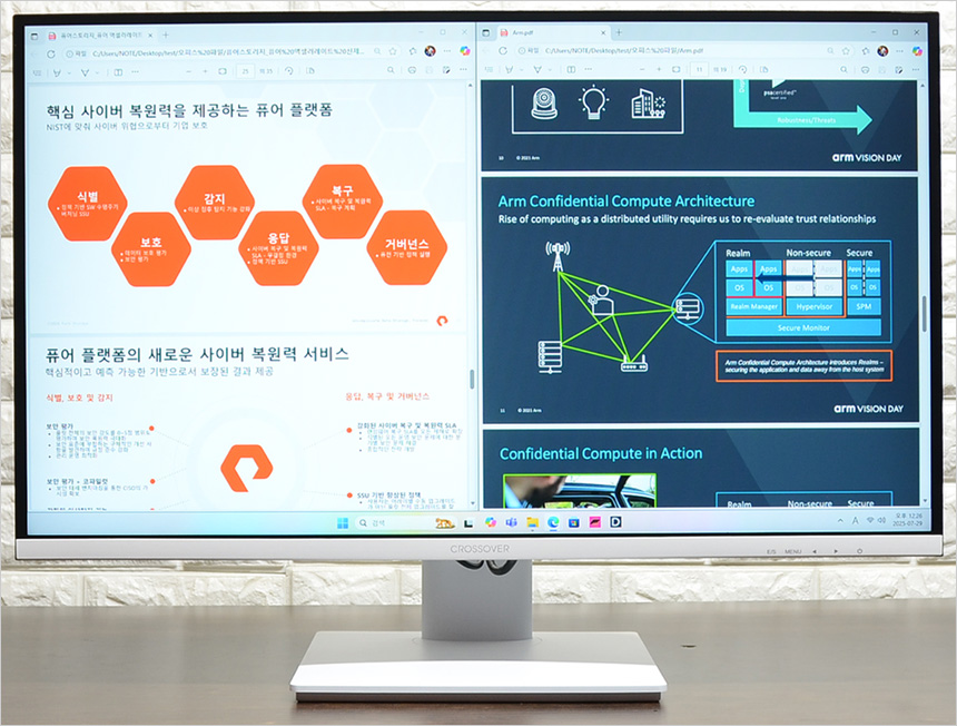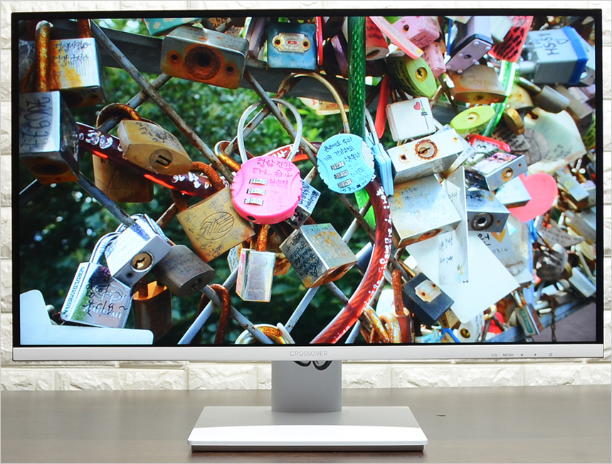 모니터 전면부의 모습으로 27형 대화면에 FHD (1920 x 1080) 해상도를 지원하며 VA나 TN 패널을 탑재한 보급형 모델들과 달리 패스트 IPS 패널을 탑재해 진하고 선명한 영상을 즐길 수 있다. 특히 178도 광시야각 지원으로 시야각으로 인한 불편없이 사용할 수 있었다.