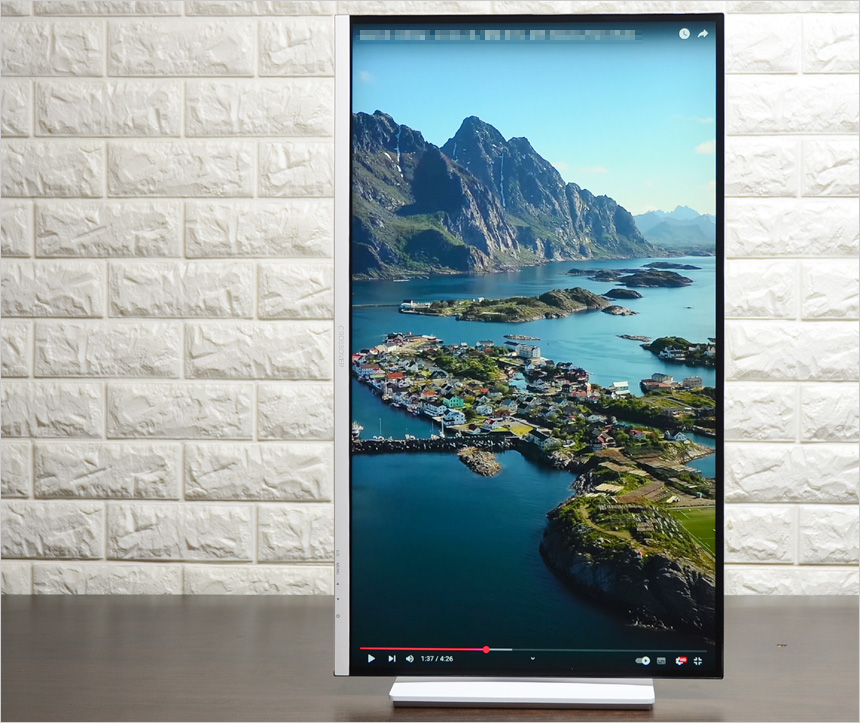 멀티스탠드를 기본 지원하는 것도 매력적인 부분이다. 일반 모니터를 세로모드로 사용하고 싶을 경우 5만원 정도의 비용을 들여 ARM을 구입해야 하는데 이 제품은 멀티스탠드가 장착되어 추가비용 없이 유튜브 세로영상을 풀화면으로 즐길 수 있다.