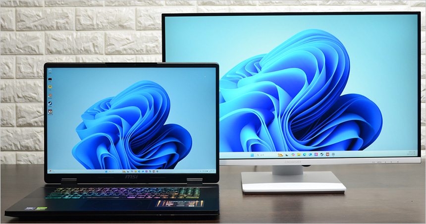 노트북과 HDMI로 연결한 모습으로 원활하게 작동하는 것을 확인할 수 있었다. 멀티테스킹 용도뿐만 아니라 사용하는 노트북이 고성능이지만 60Hz 주사율을 지원해 FPS 게임을 즐기기 힘들 경우 특히 유용하게 사용할 수 있을 것이다.