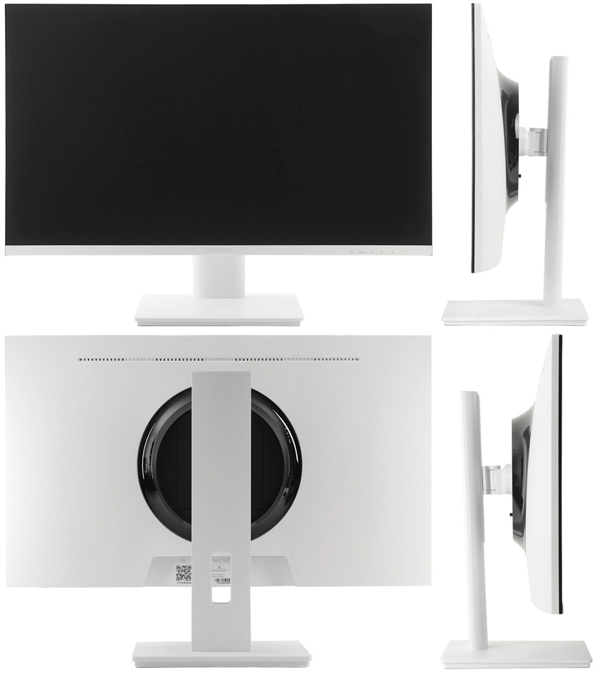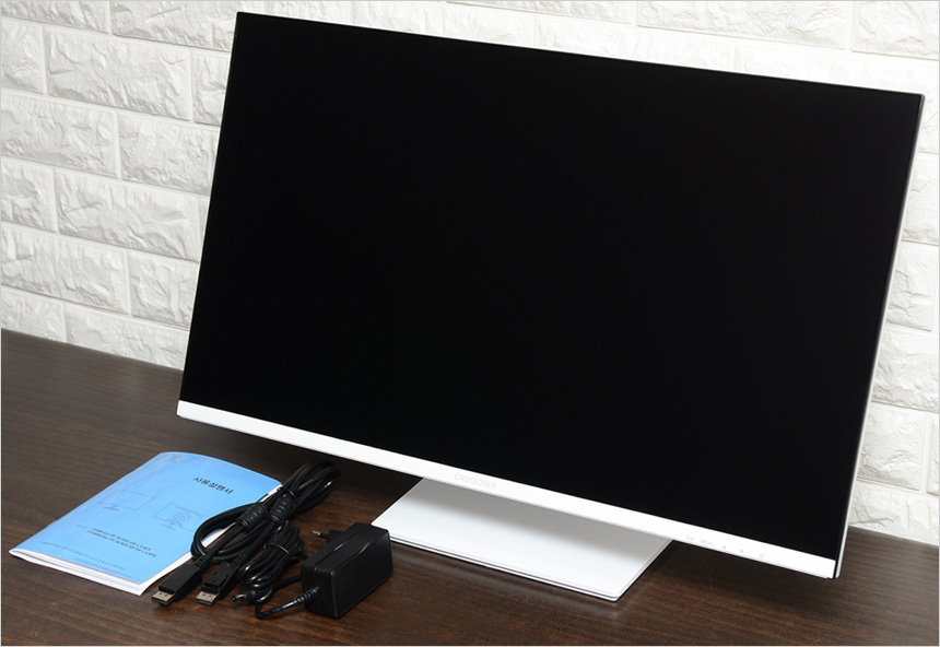 모니터의 디자인은 상당히 깔끔한 것을 확인할 수 있다. 화사한 화이트 컬러를 적용해 최근 유행하고 있는 화이트 PC와 좋은 궁합을 보여주며 보급형 모델들과는 비교되는 높은 마감 완성도를 보여주어 고급스러운 느낌도 충분히 살렸다. 화려함을 더하지만 지문이나 먼지등이 잘 묻어나는 하이그로시 사용을 최소화해 손쉽게 관리할 수 있다.