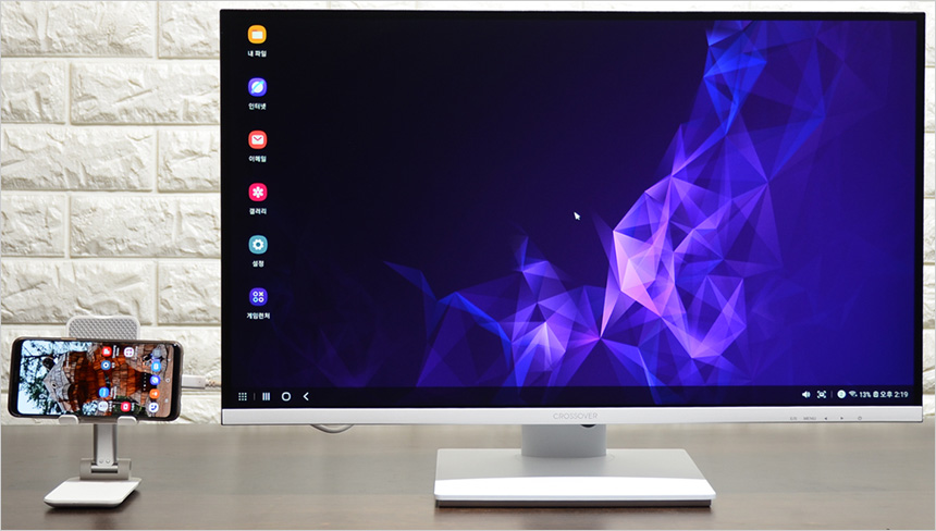C타입 지원으로 스마트폰 영상을 대화면으로 즐기는 용도로도 활용할 수 있다. 특히 삼성 DEX를 지원하는 스마트폰을 사용하고 있을 경우 스마트폰 연결만으로 PC처럼 활용할 수 있다. (키보드와 마우스는 스마트폰에 블루투스로 연결하면 된다.) 15W PD충전을 지원하는 모뎁답게 연결즉시 스마트폰이 충전되는 것도 확인할 수 있었다.