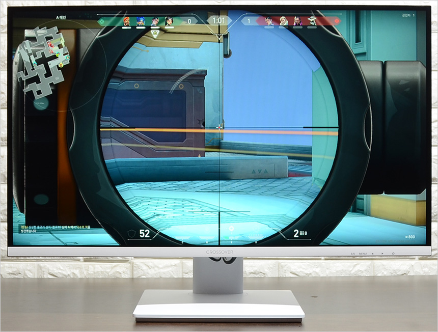 또한 배경에 따라 색이 달라져 높은 시인성을 구현하는 Ai 조준선을 제공해 사격 정확성을 높일 수 있었으며 프리싱크와 지싱크 호환 기술이 적용된 모델답게 화면 찟어짐 등의 오작동이 발생하지 않아 게임에 몰입할 수 있었다. IPS 특유의 선명함이 돋보이고 화면 크기도 커 즐겁게 게임을 즐길 수 있을 것이다.