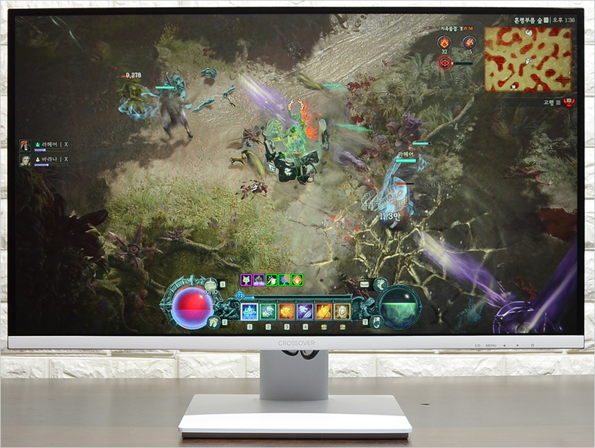 디아블로 4 와 스텔라 블레이드를 플레이 하고 있는 모습으로 배경 자체가 어두워 보급형 모니터를 사용했을 때 에는 캐릭터와 배경 구분이 쉽지 않았는데 높은 밝기를 지원해 확연한 구분감을 경험할 수 있었다. 또한 빠른 응답속도를 지원해 치열한 전투 상황에서도 잔상등으로 인한 스트레스 없이 게임에 집중할 수 있었으며 주사율이 높아 어지럼증이 특히 심한 스텔라 블레이드 실행시 피로감이 크지 않았다.