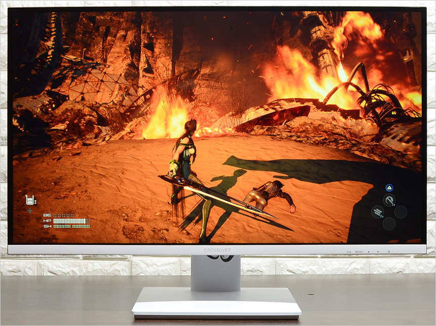 게이밍에 특화된 모델답게 프리싱크와 지싱크 호환기술을 지원해 화면 찢어짐 등으로 인한 불편없이 게임을 즐길 수 있으며 Ai 조준선 지원으로 사격 정확성을 높일 수 있다. 뿐만 아니라 가격대비 밝기도 높은 편으로 암부나 실내에서도 명확하게 캐릭터와 배경을 구분할 수 있었다.