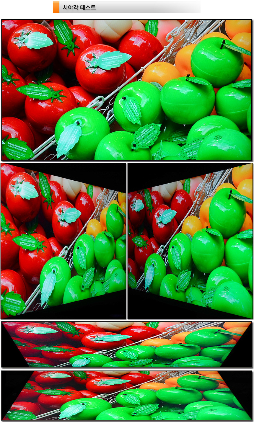 FAST IPS 패널을 탑재한 제품으로 시야각으로 인한 불편없이 영상을 즐길 수 있다. 상단의 사진은 시야각 테스트를 진행하고 있는 모습으로 극단적인 각도에서도 채도저하나 반전현상은 발생하지 않았다.