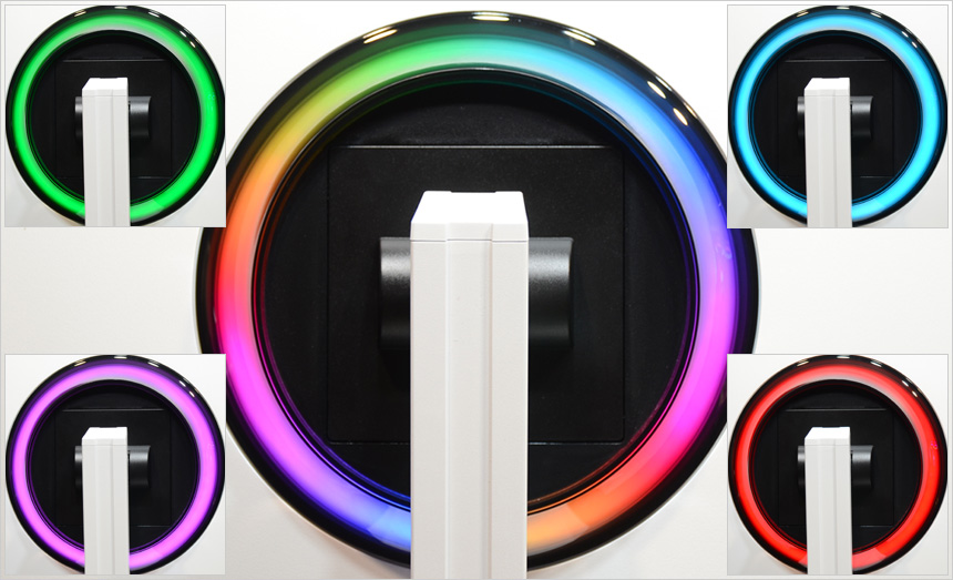 LED 무드등의 모습으로 기존의 LED와 확연히 비교되는 진한 컬러와 밝기를 보여주었다. (OSD에서 ON/OFF 가 가능하며 효과도 변경할 수 있다.)