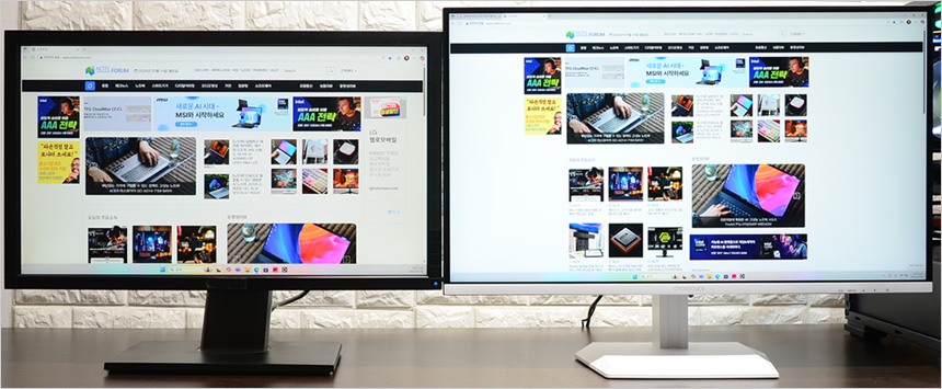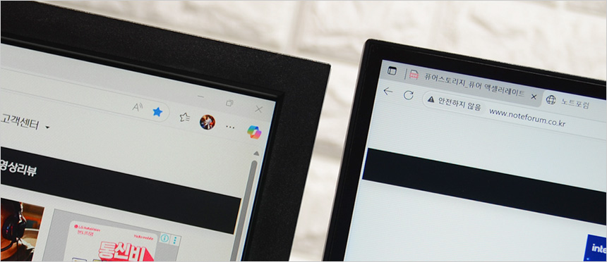 두 제품의 베젤 두께를 비교해 보았는데 확연한 차이가 발생하는 것을 확인할 수 있었다. 두꺼운 베젤로 인한 거슬림 없이 영상에 몰입하고 싶다면 좋은 선택이 될 것이다.