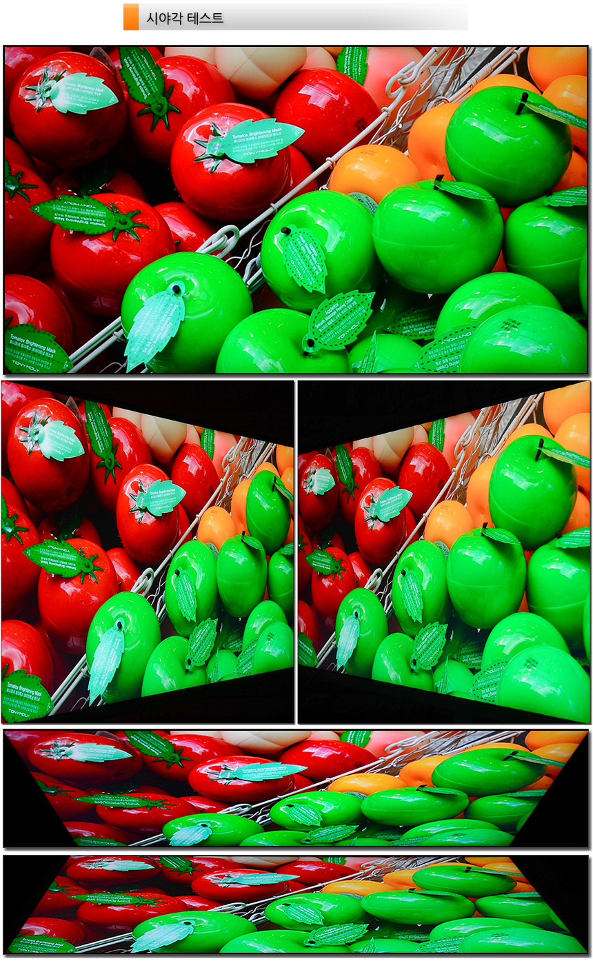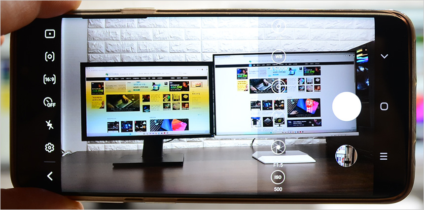 IPS 모듈 패널을 탑재한 모델답게 시야각의 불편없이 사용할 수 있다. 상단의 사진은 시야각 테스트를 진행한 모습으로 극단적인 각도에서도 채도저하나 반전은 발생하지 않는 것을 확인할 수 있었다.