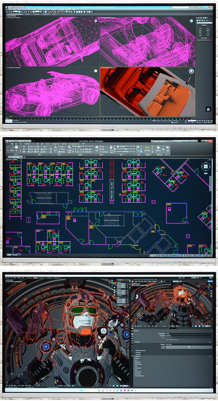 이 제품은 사진편집이나 디자인 뿐만 아니라 높은 디테일을 필요로 하는 캐드나 3D 작업, 랜더링 등의 용도로도 활용할 수 있다. 색을 정확하게 표현할 뿐만 아니라 확대시 뭉개져 명확하게 선을 확인하기 힘는 저해상도 모니터와 달리 얇은선 하나하나를 확연하게 구분할 수 있었다.