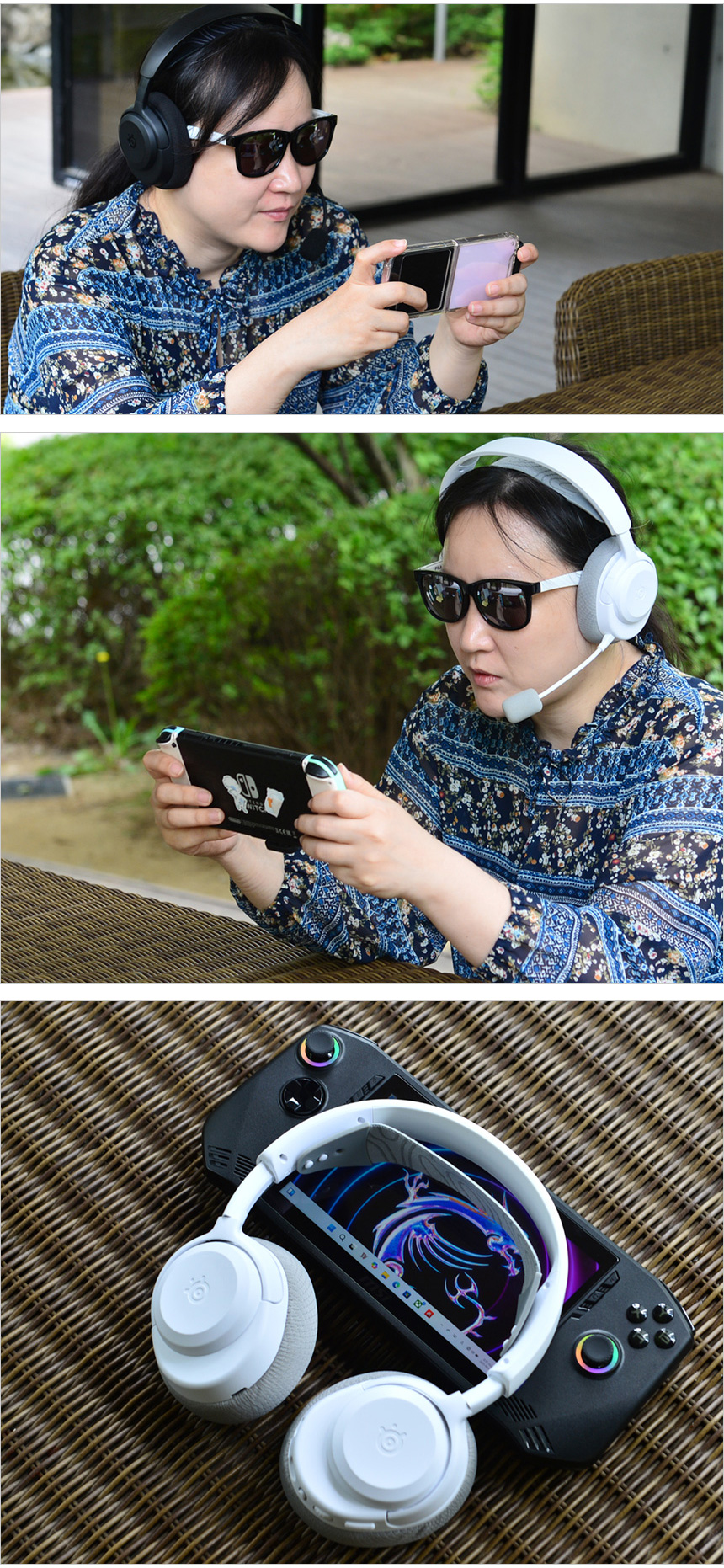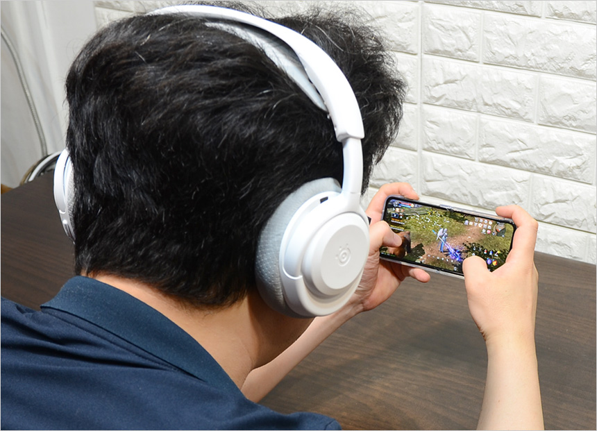 블루투스 연결 후 스마트폰 게임을 플레이 하고 있는 모습으로 PC용 S/W만 제공해 EQ 설정이 불가한 대부분의 게이밍 헤드셋과 달리 스마트폰 앱을 지원해 게임에 맞는 EQ 설정이 가능한 것이 인상적이었다. 외부에서 모바일 게임을 즐기는 유저들이 퀄리티 높은 입체음향을 즐기고 싶다면 좋은 대안이 될 것이다.
