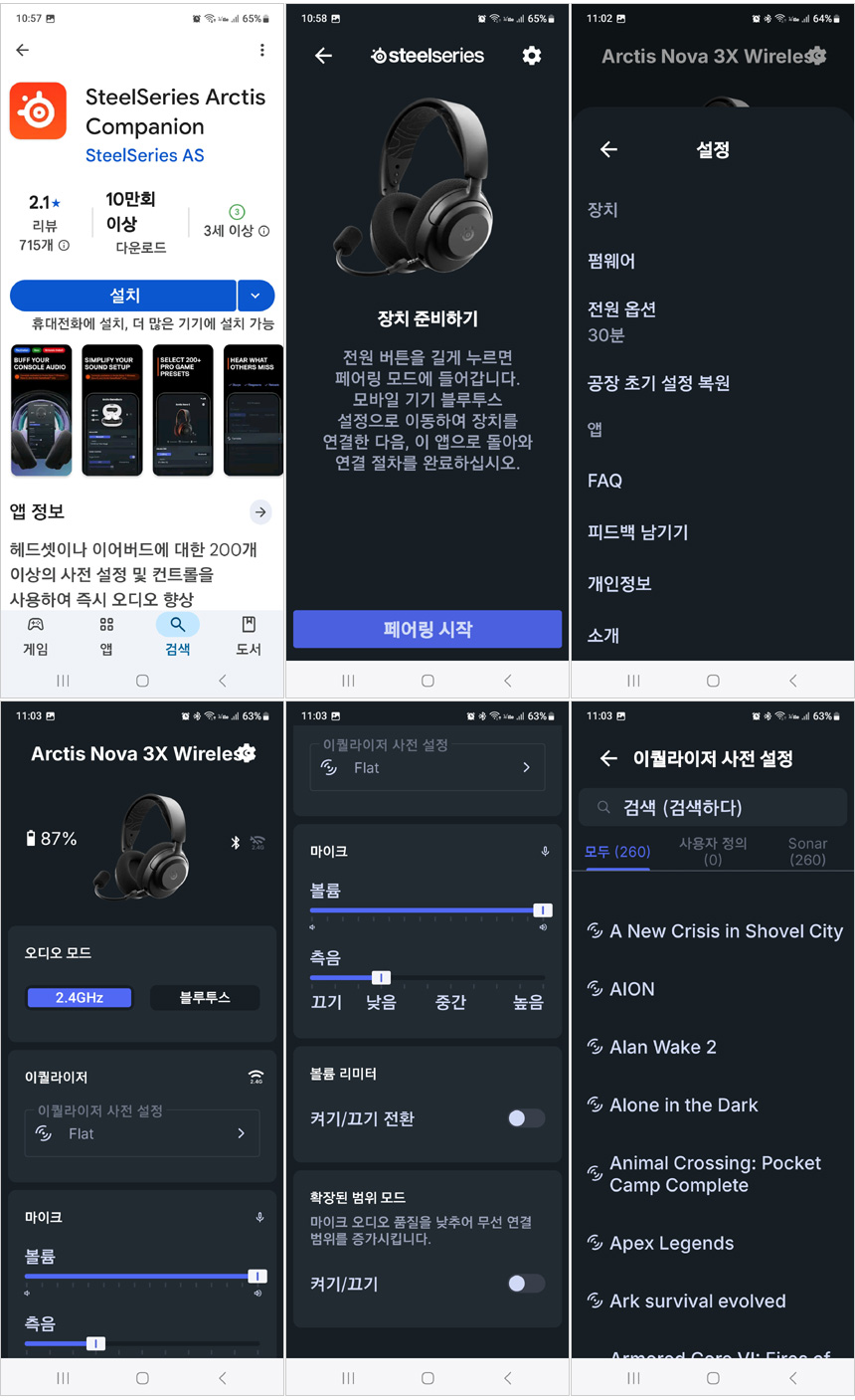 본문에서 강조한 것과 같이 전용 S/W와 모바일 앱 지원도 큰 장점이라 말씀드리고 싶다. 스틸시리즈 GG는 경쟁사 제품들과 확연히 비교되는 다양한 설정을 지원해 사용자에 맞게 헤드셋을 셋팅할 수 있으며 260여개의 프리셋 지원으로 게임에 최적화된 사운드를 즐길 수 있다. 또한 일반 헤드셋에서는 지원하지 않던 모바일 앱이 적용되어 스마트폰으로 손쉽게 프리셋 등을 셋팅할 수 있었다.