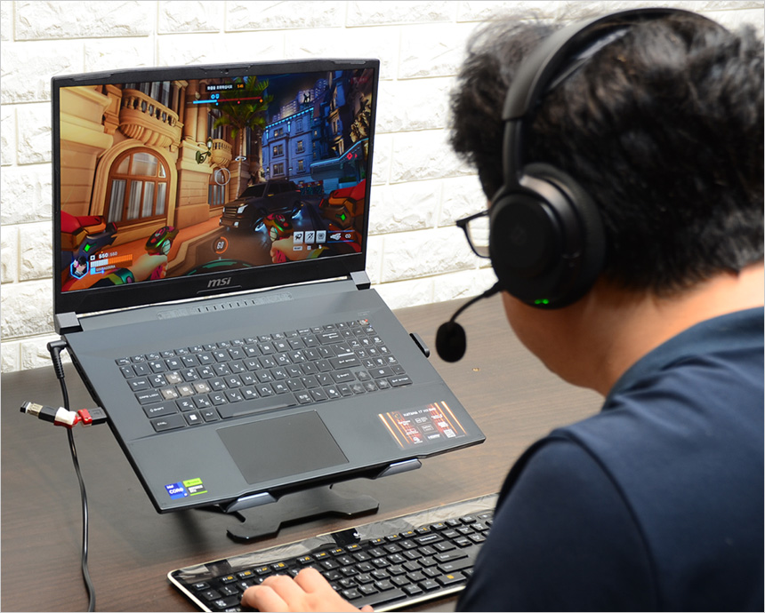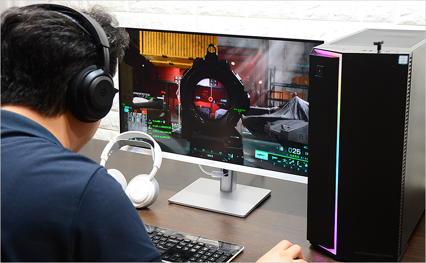 PC와 노트북을 이용해 FPS 게임 테스트를 진행하고 있는 모습으로 입체음향에 특화된 모델답게 멀리서부터 들려오는 적의 발자국 소리를 정확하게 인지할 수 있었다. (다수의 적이 움직일때 충분히 구분할 수 있었다.) 뿐만 아니라 소리에 방향성을 제공해 적의 위치를 예측하고 빠르게?대응할 수 있었다.